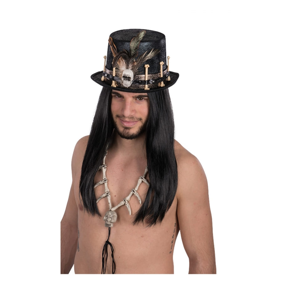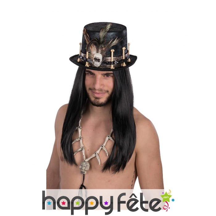 Le haut de forme noir de sorcier vaudou pour adulte est un accessoire unisexe.