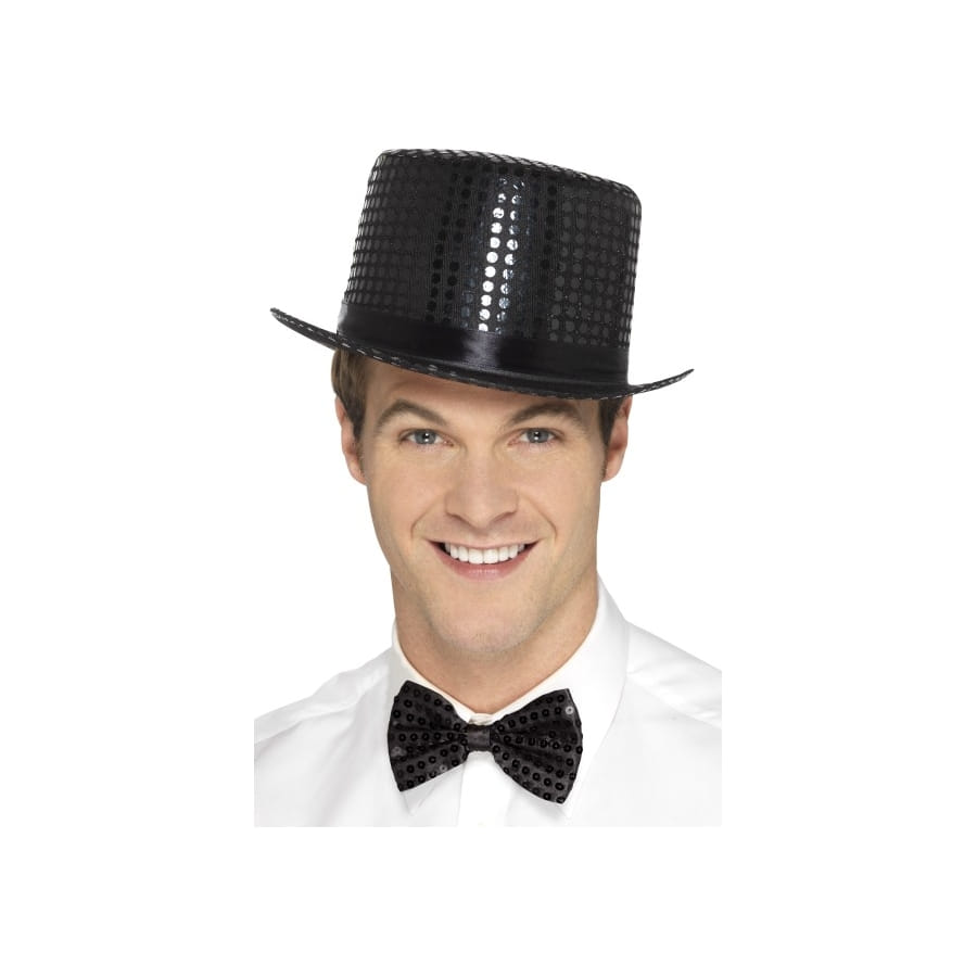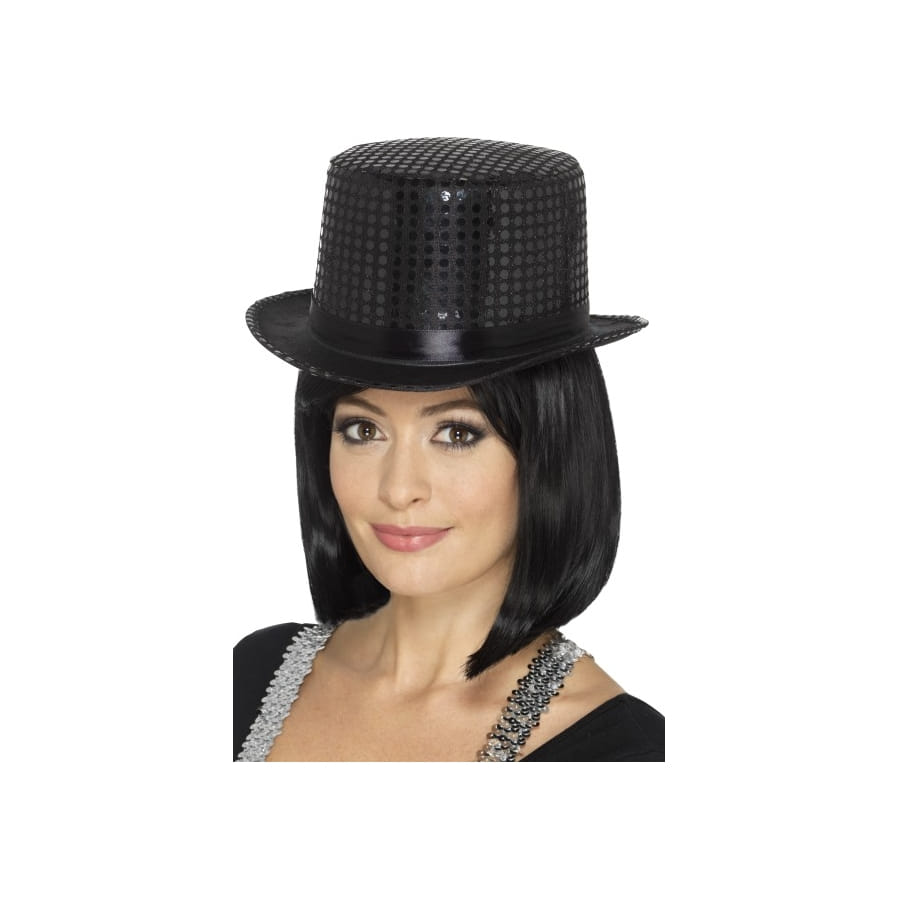Le noir est connu pour représenter l'élégance en matière de tenue. C'est le cas de ce haut de forme noir en sequins. Cet accessoire pourra s'adapter à de nombreuses occasions, aussi bien pour les fêtes de fin d'année que pour les évènements dans le thème des années Charleston, Disco ou encore dans le style cabaret. Il accentuera parfaitement une tenue de soirée.