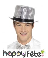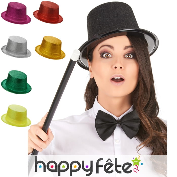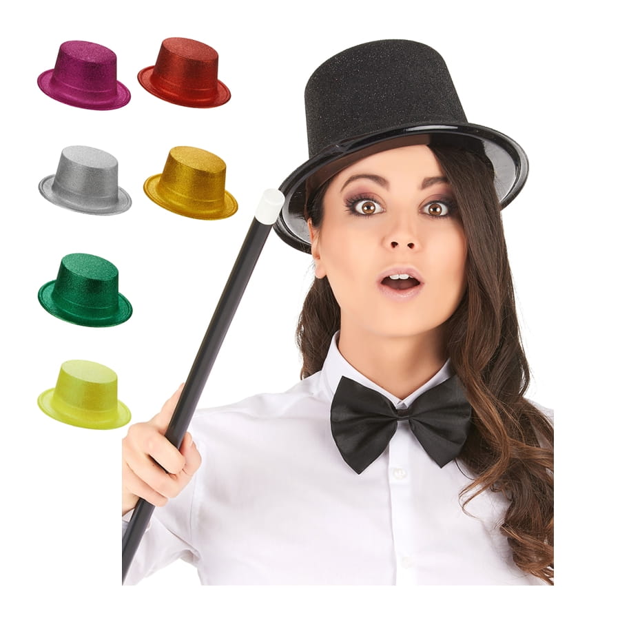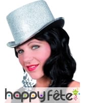 Ce Haut de forme pailleté en plastique pour adulte convient à un tour de tête avoisinant les 57 cm de diamètre.