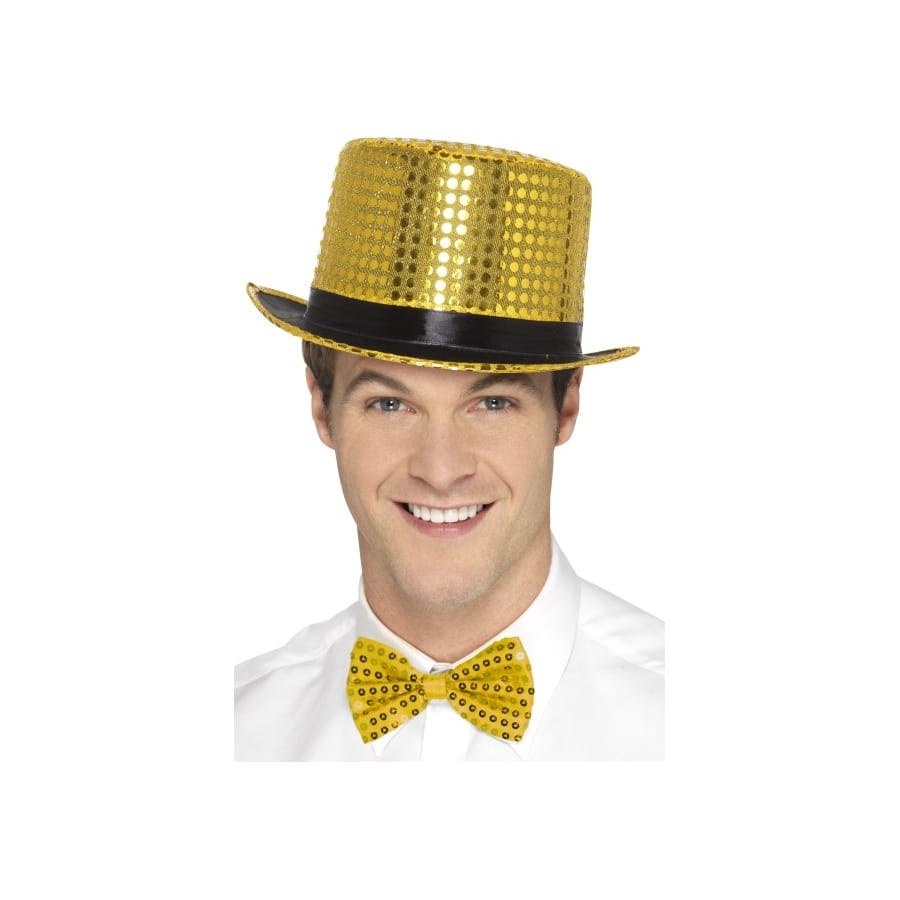Envie d'une nouveauté dans votre garde-robe ? Nous vous proposons ce haut de forme sequins dorés. Cet accessoire ira aussi bien aux hommes qu'aux femmes. Il conviendra à toutes les circonstances telles que les fêtes de fin d'années, les thèmes Années 20-30 ou Disco. Pour ces messieurs, n'hésitez pas à compléter votre tenue avec un noeud assorti, que vous trouverez également parmi nos accessoires sur le site.