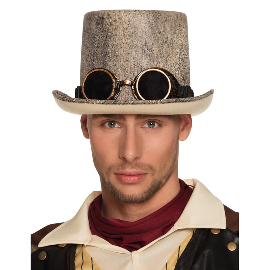Optez plutôt pour l'élégant et le raffiné, avec notre Haut de forme Steampunk beige patiné pour adulte.