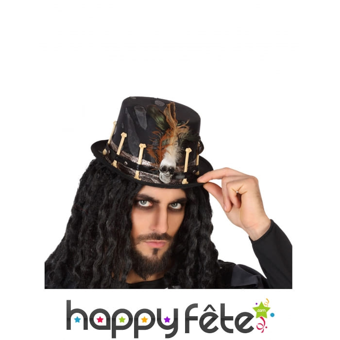 Soignez votre entrée pour le prochain Halloween grâce au haut de forme vaudou pour adulte.
