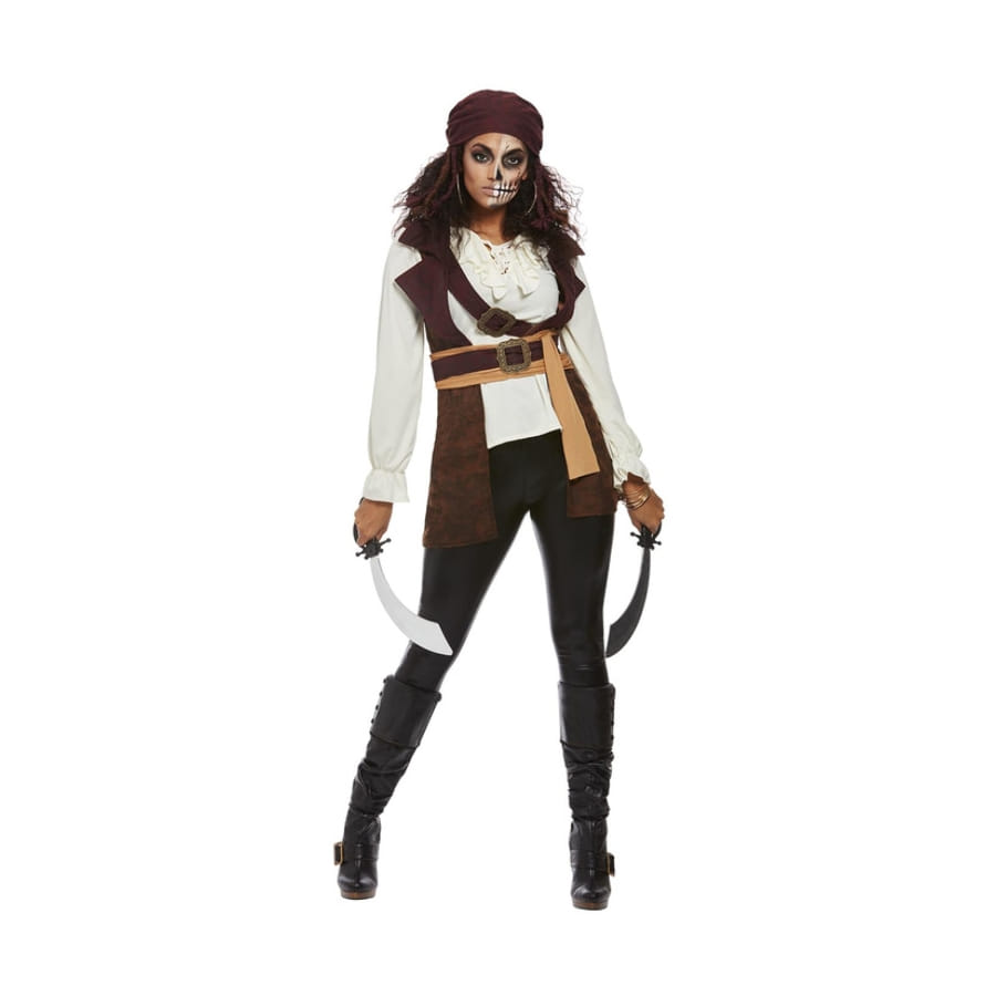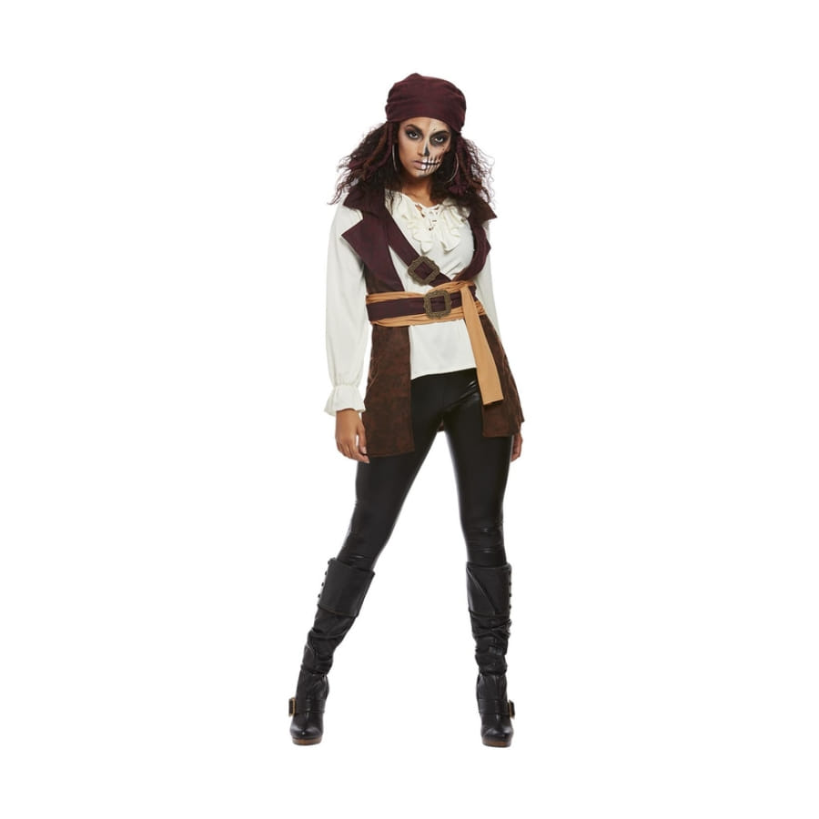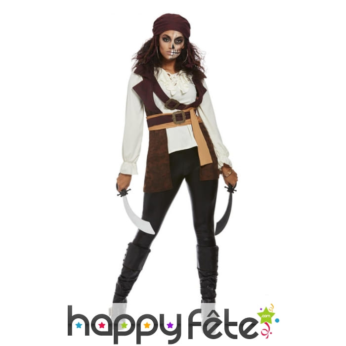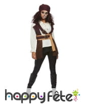Devenez la femme la plus puissante des grands océans grâce à ce Haut marron blanc de femme pirate avec bandeau.