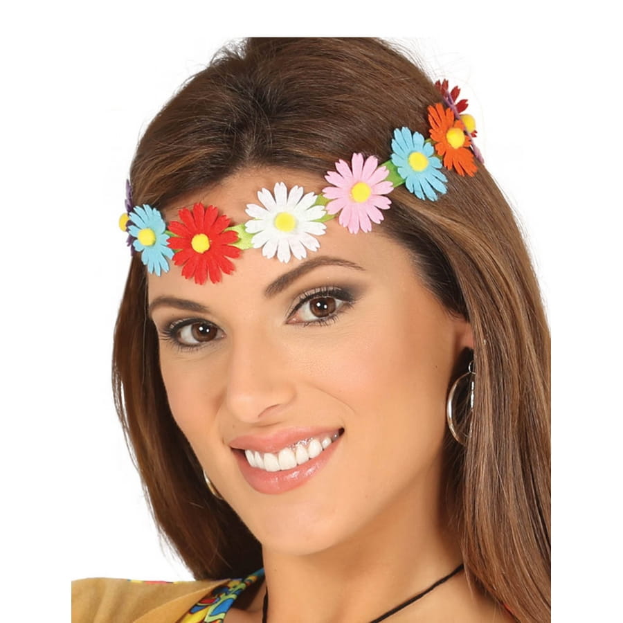 Faites un saut dans le temps et rejoignez fièrement le célèbre mouvement Hippie des années 60, avec notre headband avec fleurs colorées pour adulte.