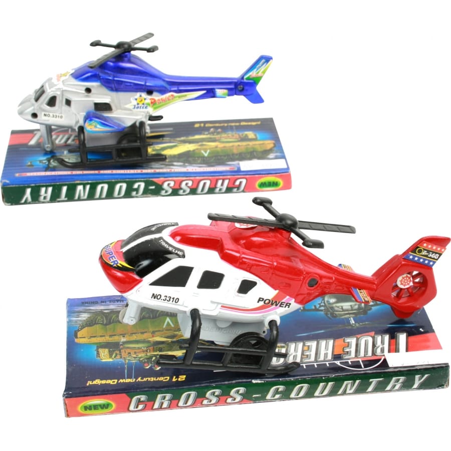 Ce magnifique hélicoptère fait 17 centimètre de long. Pas de choix du modèle ou de la couleur. Si vous reculez l'hélicoptère sur ses roues, lorsque vous la relâche, elle avancera tout seul. Vous pouvez l'offrir a un enfant pour sa fête d'anniversaire.
