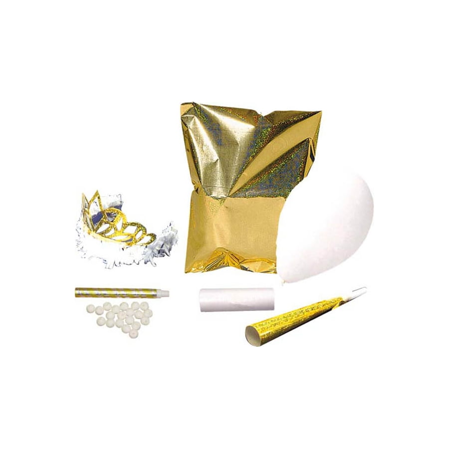 Sachet hologramme diamant pour femme de couleur dorée composé d'un ballon, d'un serpentin, d'un sans-gêne, d'une sarbacane, de boules dancing et d'une couronne. Avec ce sachet, vous aurez de quoi faire la fête toute la nuit!