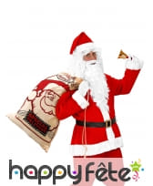 Accessoirisez parfaitement votre déguisement de Noël avec la hotte de Noël toile de jute imprimée du Père Noël.