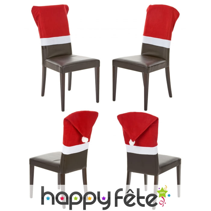 Les chaises peuvent aussi se mettre au rouge et blanc à travers ces housses de chaise bonnet de Noël, par 4.