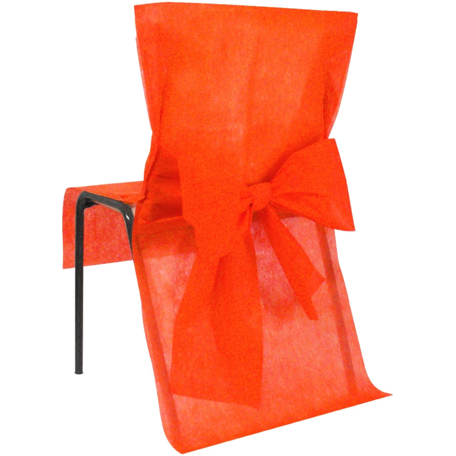 Pour faire de votre fête, une fête inoubliable , ces housses de chaises feront l'affaire. Elles sublimeront votre intérieur, ces housses non tissées avec nœud sont de couleur mandarine. Les housses de chaises sont vendues en lot de 10 vous pourrez vous en servir à plusieurs reprises.