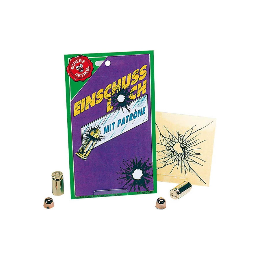 Pour faire cette farce que nous vous proposons, il ne faudra pas trop de temps. Il vous suffira de commander ici cet impact de balle avec balle et de les installer. L'impact de balle est de couleur transparente et la balle de couleur dorée. Ensuite à vous de raconter une histoire invraisemblable comme quoi on vous a tiré dessus et de montrer à vos amis les preuves, ils en seront scotchés !