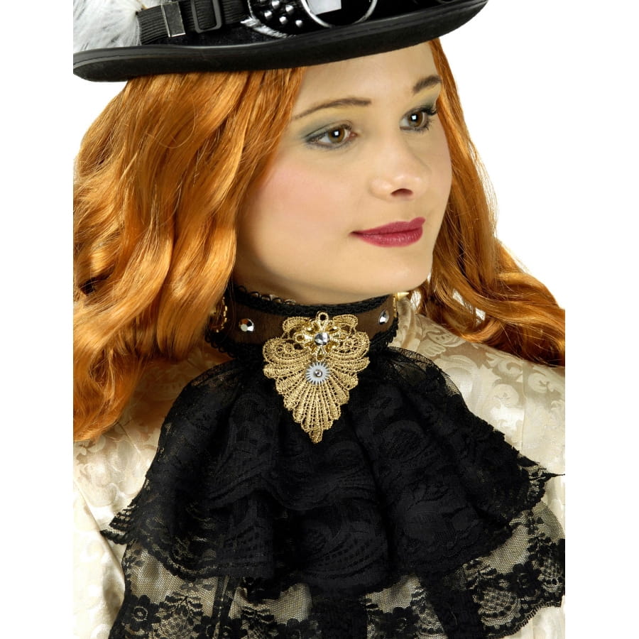 Le jabot noir Steampunk est un bijou en imitation de dentelle constitué de 2 étages.