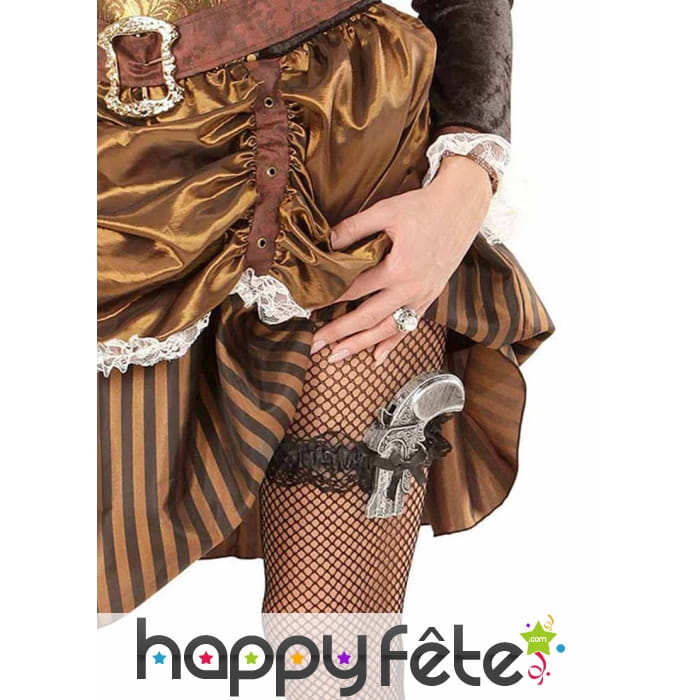 La jarretière noire avec faux revolver est un accessoire destiné aux femmes.