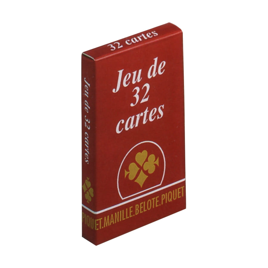 Jeu de 32 cartes gauloises avec dos quadrillé. Les cartes viennent dans un étui en carton de couleur rouge. Elles sont parfaites pour organiser une partie de Manille, de Belote ou de Piquet.
