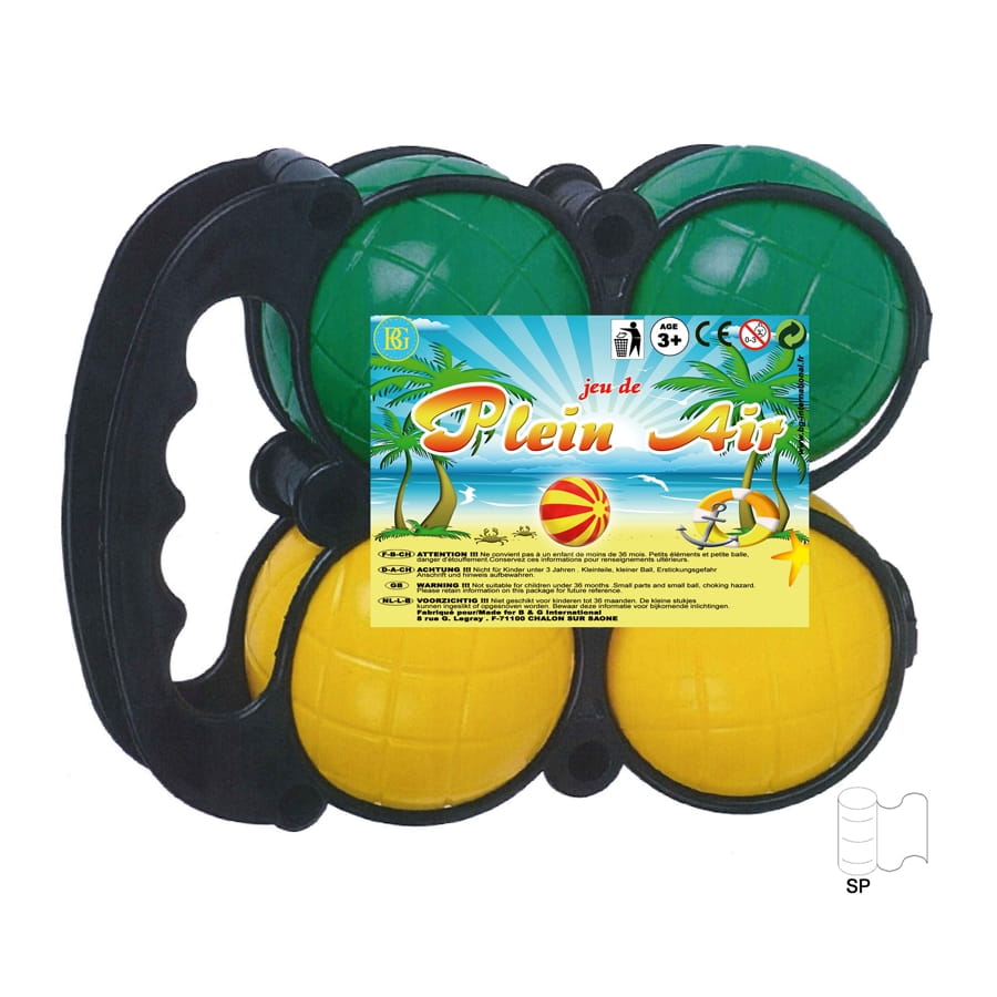 Initiez vos petits garnements au sport qui vous passionne ! Voici un jeu qui va les occuper pour un long moment ! Nous vous présentons un formidable jeu de pétanque constitué par 4 boules de pétanques en plastique ainsi que d'un cochonnet. Les boules sont de couleur jaune et verte. Les enfants vont adorer cette activité, qui va en plus accroître leur capacité de précision ! A commander sans attendre !