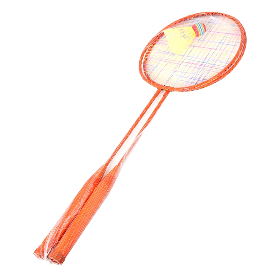 Jeu de Badminton composé de 2 raquettes orange et d'un volant jaune. La taille des raquettes est de 63 centimètres de long. Il vous sera impossible de choisir ni le modèle ni la couleur des éléments du set. Vous le recevrez comme présenté. Il est idéal pour aider vos enfants à se dégourdir un peu et se mettre au sport.