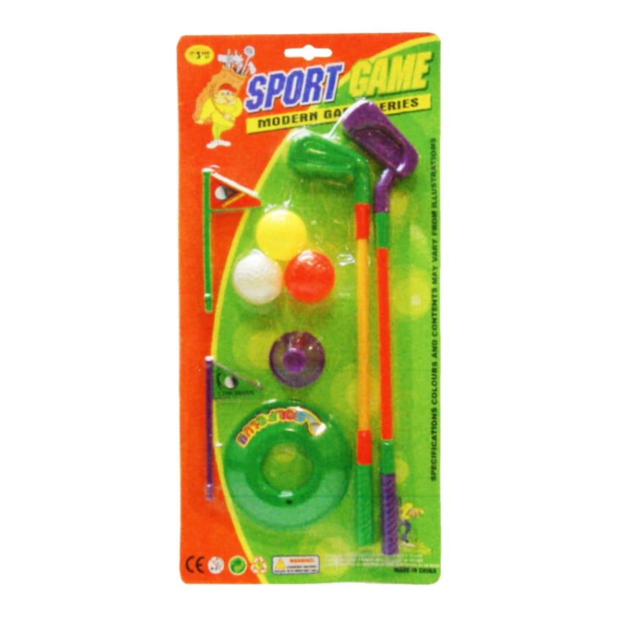 Set de golf composé de deux clubs, de 3 balles, d'un trou et d'un drapeau pour enfants. Ce set comprend tout le nécessaire pour une partie de golf amicale entre enfants!