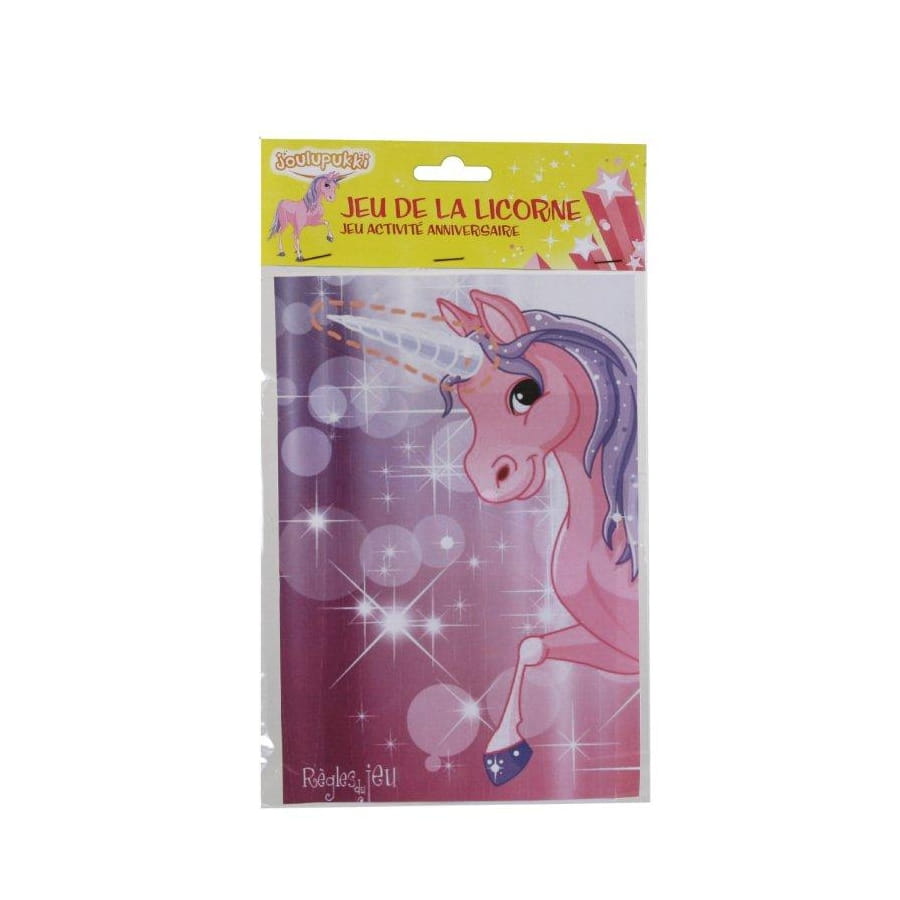 Lors d'un goûter d'anniversaire, les enfants ont besoin de jeux amusants pour passer le temps. Le jeu de la licorne aura beaucoup de succès auprès des adeptes de contes de fée. Il est formé par un grand poster de licorne rose sans corne. Le joueur aura les yeux bandés et essayera de remettre la corne à sa place avec l'aide précieuse de ses camarades.