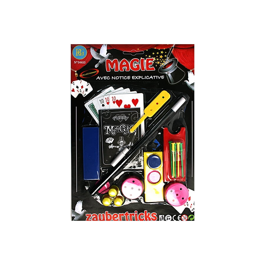 Devenez un apprenti magicien avec tout un kit de magie. Épatez vos amis avec des tours dont vous êtes le seul à connaître les secrets. Optez pour ce lot de jeu de magie complet fourni avec un mode d'emploi. Vous disposerez d'une multitude d'accessoires : cartes, baguette magique, fléchettes, etc ; le tout est enfermé dans un contenant de 31,5 x 21,5 cm de dimension. 30 modèles multicolores sont disponibles, mais vous n'aurez pas le choix du modèle ou de la couleur à la commande (les accessoires de magies peuvent différer légèrement en fonction de l'arrivage).