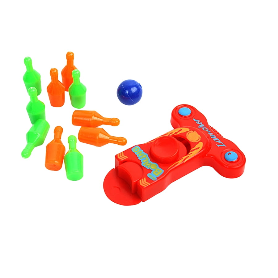 Votre enfant est-il déjà friand de bowling à son âge alors qu'il n'arrive même pas à soulever la boule? Eh bien aidez-le un peu à s'entraîner avec ce jeu de mini-bowling. Ce jeu est composé d'un lanceur, d'une balle et de dix quilles! Il pourra s'amuser avec et s'entraîner en même temps à entrer un jour dans la cour des grands! Et strike!!