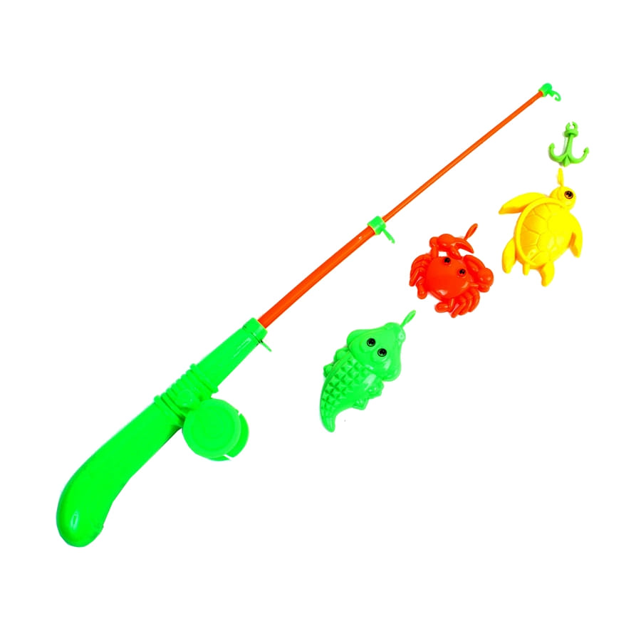 A la pêche tout le monde ! Grâce à ce jeu de pêche à la ligne avec poissons, les enfants vont pouvoir tester leur habileté. L'article est de couleur verte, et il est composé d'une canne fournie avec quatre poissons. A noter que la couleur peut varier de celle de la photo.