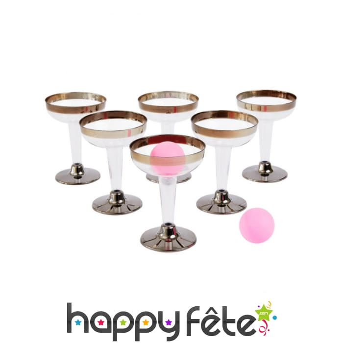 Avec Les 2 balles, faites des lancés et dès qu'elles atterrissent dans les verres, à vous de les boires!