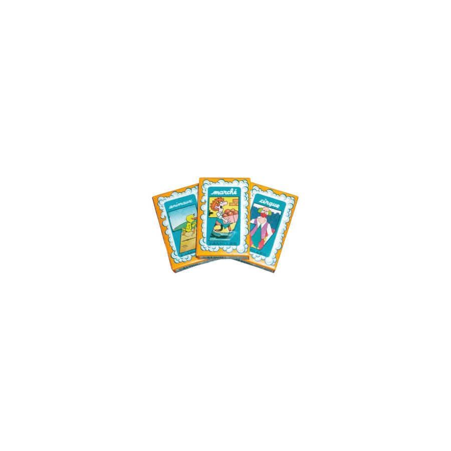 Jeu de 7 familles multicolore pour garçon ou fille. Au moment de passer la commande, vous ne pourrez choisir ni le modèle ni la couleur du jeu. Vous recevrez celui des animaux, du cirque ou du marché. C'est un moyen très amusant et éducatif pour permettre à vos enfants de se distraire.