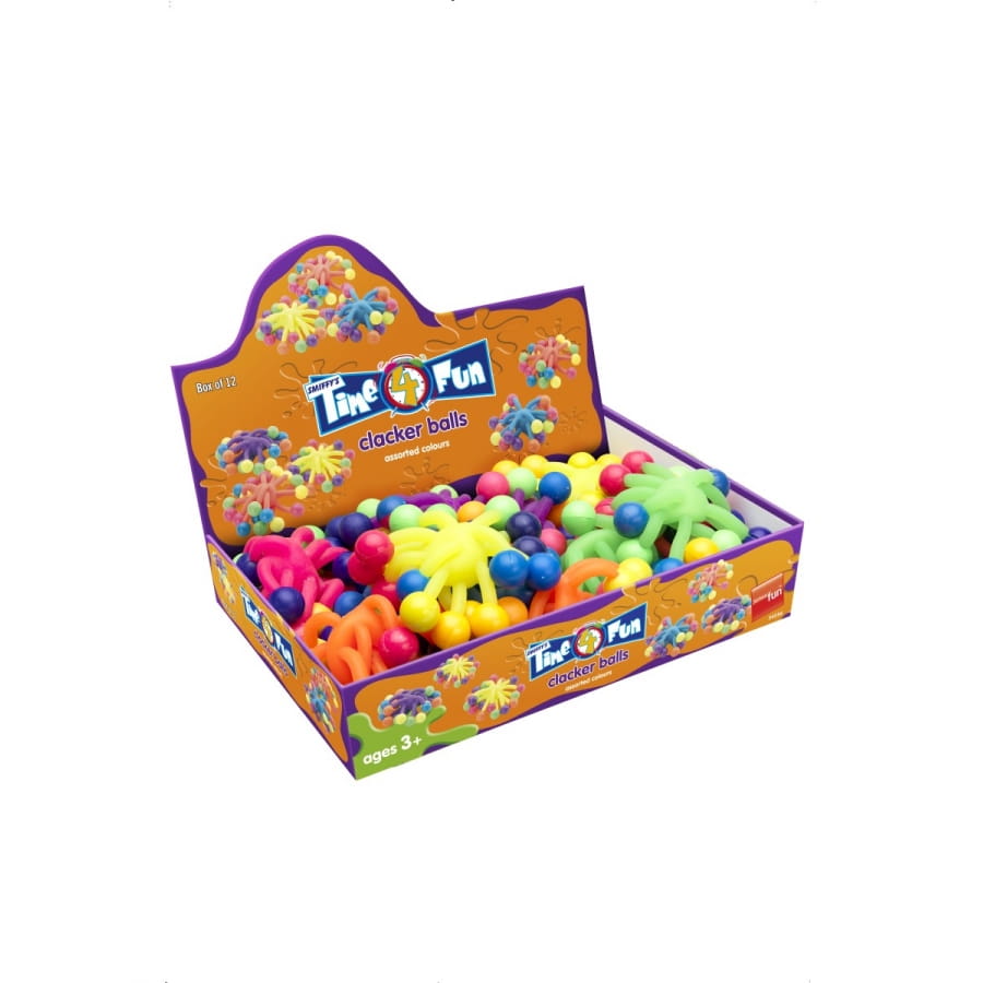 Jeu de balles multicolores, vendu en boîte de 12, pour garçon ou fille. Ce jeu de balles est plus original que les autres avec des balles à multiples branches et boules. Montrez aux enfants comment y jouer lors d'une kermesse ou à l'occasion d'un anniversaire.