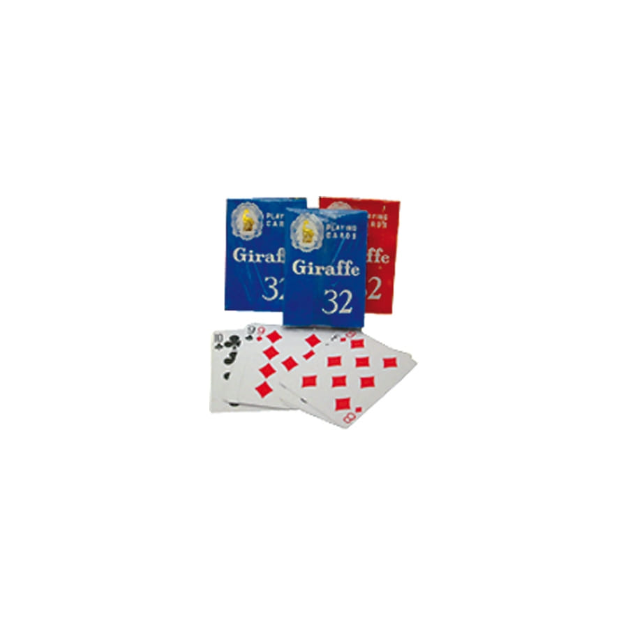 Jeu de 32 cartes mesurant chacune 6 centimètres de largeur sur 9 centimètres de longueur. Au moment de passer la commande, vous ne pourrez choisir ni le modèle ni la couleur du jeu que vous souhaitez. Vous recevrez le modèle rouge ou le bleu. Un jeu de cartes est toujours indispensable, même en ces temps modernes!