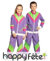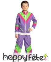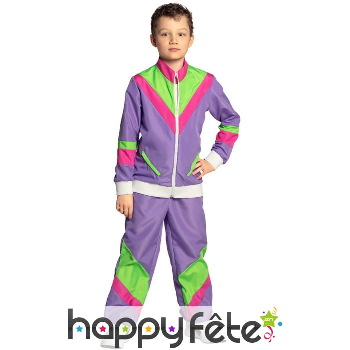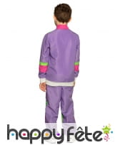 Découvrez ce superbe jogging années 80 violet pour enfant, qui fera sensation lors d'une prochaine soirée à thème.