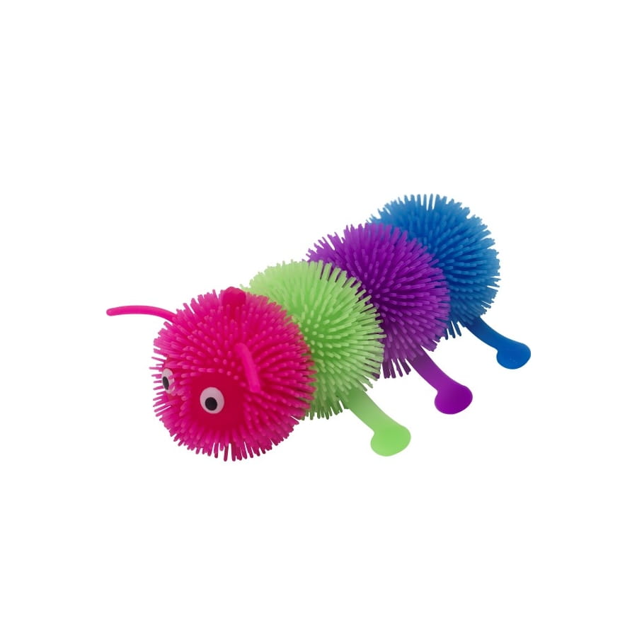 Ce lot contient 12 chenilles boule de poil multicolores et lumineuses. Chacune d'entre elle mesure environ 15 cm. Elles sont livrées dans une boîte présentoir et sont idéales pour une kermesse.