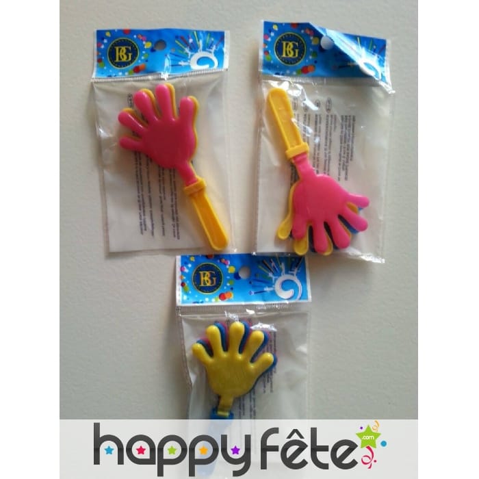 Cette paire de mains castagnettes fera plaisir aux enfants, ils pourront s'amuser en faisant du bruit. Ces mains castagnettes sont colorées et disponibles en différents coloris qu'il n'est pas possible de choisir au moment de la commande. Vendues à l'unité.