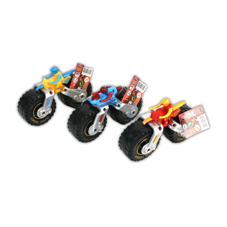 Plus que les autres motos que nous proposons, ce jouet moto wheeling avec pilote pourra produire d'amples mouvements comme le wheeling, grâce à ses gros pneus et au pilote déjà en place. Cette moto vendue à l'unité est disponible en différentes couleurs et mesure 13 cm de longueur. Mais lors de la commande, vous n'aurez pas le choix du modèle.