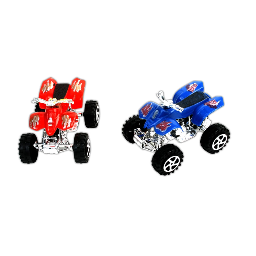 Vos petits garçons sont mis à l'honneur avec ce jouet qui leur est uniquement destiné, parce que les petites filles n'aiment pas les quads. Nous avons de jolis quads pour ces petits bonhommes, qui mesurent 8 cm. Ils sont proposés en rouge ou en bleu. Et plus que les simples quads, ceux-ci sont à rétro-friction. Lors de la commande, vous n'aurez pas le choix de la couleur.
