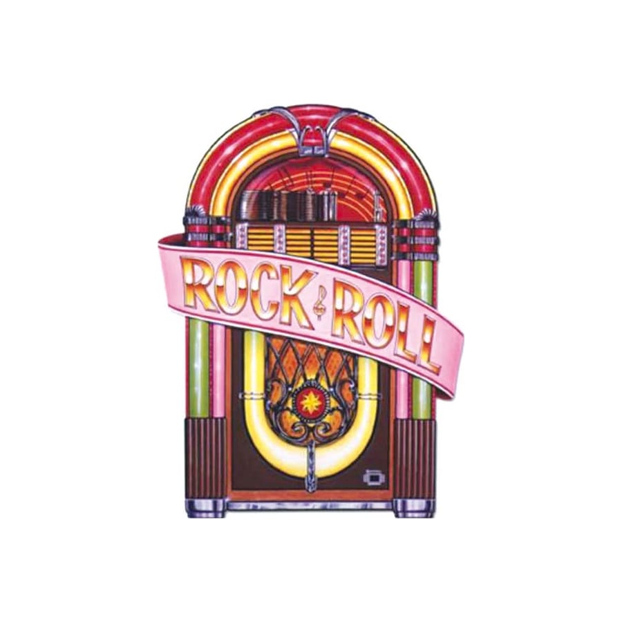 Pour compléter la décoration de votre fête basée sur le thème de la musique ou tout simplement pour la fête de la musique, cette décoration juke box est ce qu'il vous faut. De 90cm ce juke box est imprimé des deux cotés , multicolore avec écrit en gros dessus 'Rock& Roll' les amateurs des années 70 vont adorer.
