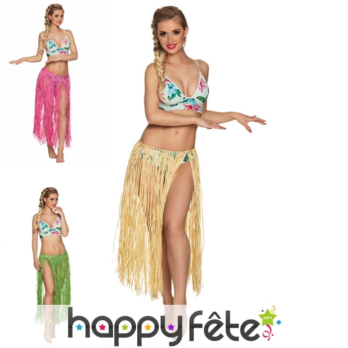 La jupe longue hawaïenne en raphia pour adulte mesure 80 cm.