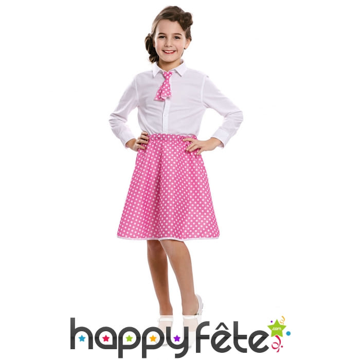 Nous vous proposons cette Jupe rose à pois blancs années 50 pour fille.