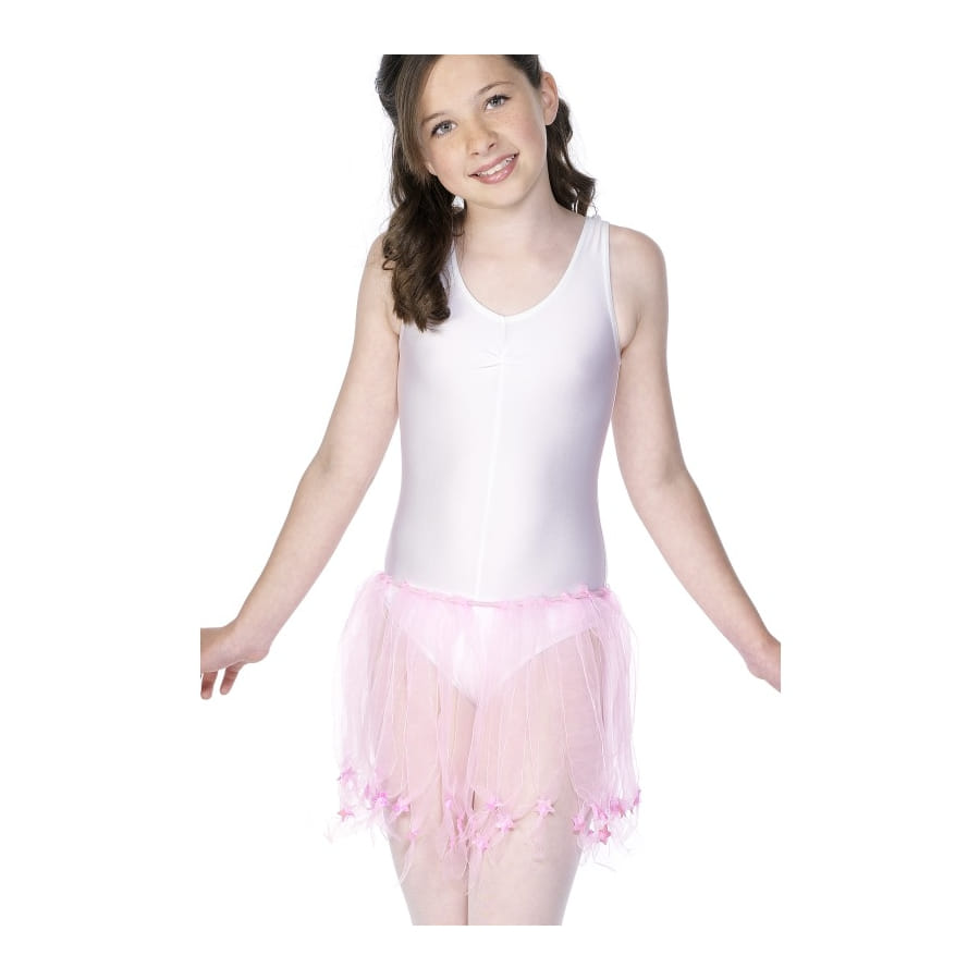 Votre fille sera la plus belle des danseuses dans cette magnifique jupe tutu. Elle est transparent de couleur rose, avec des volants au bas. Cette jupe est courte.