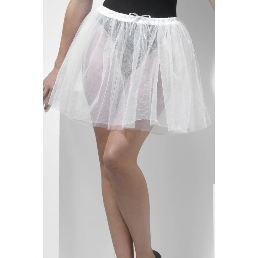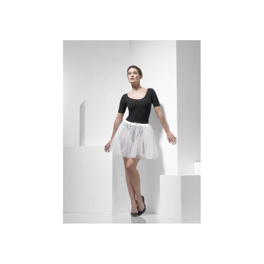 Devenez une belle danseuse aussi talentueuse que séduisante avec ce magnifique jupon blanc transparent de 34 cm que Happyfete vous propose. Ce jupon est fait en tulle blanc fin et transparent, très féminin. Il est court et bouffant, et se maintient facilement grâce à un cordon au niveau de la taille. Cet accessoire est conçu pour la gente féminine, taille adulte.