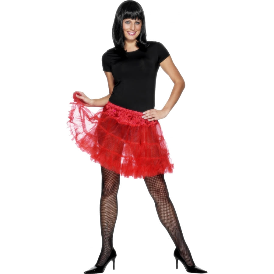 Vous pourrez utiliser ce jupon court à double volants de couleur rouge pour compléter un déguisement de diablesse, de danseuse ou autre. Cet accessoire est parfait pour compléter un déguisement d'écolière, de sorcière ou de séductrice également.