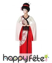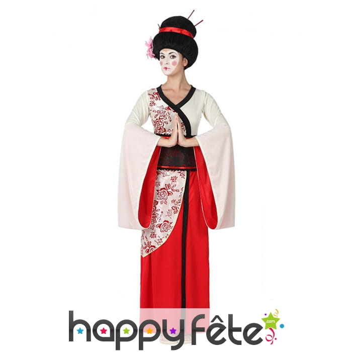 Le kimono rouge blanc de geisha pour femme est la tenue adéquate pour une soirée sur le thème autour du monde.