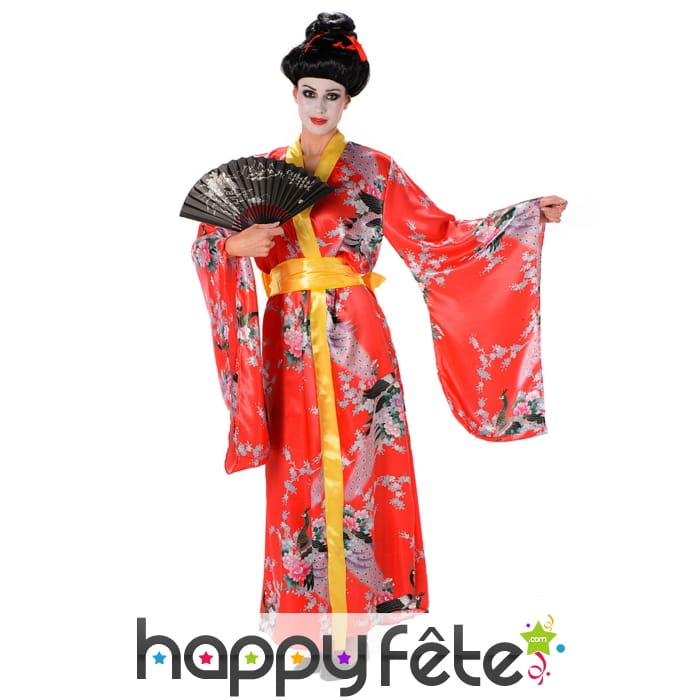 Incarnez une magnifique Geisha lors d'une soirée à thème grâce à ce Kimono rouge motifs fleuris pour femme.