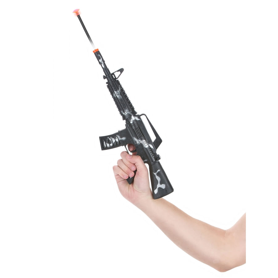 Il a la forme d'un M16 et vous pourrez actionner la gâchette pour pouvoir propulser les fléchettes à ventouse sur une distance d'environ 4 mètres.