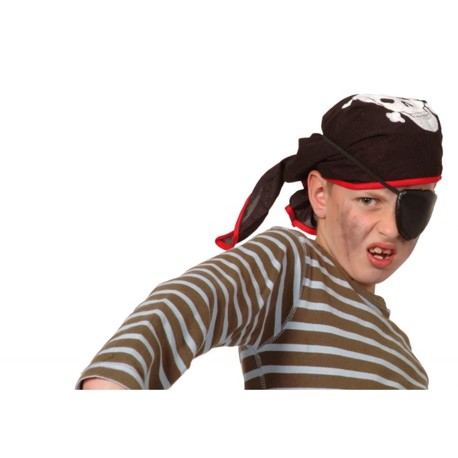 Si vous peinez à trouver les bons accessoires pour compléter le déguisement de pirate de votre fils, nous avons ce qu'il vous faut. Il s'agit du kit accessoires de pirate pour enfant disponible sur notre site. Il comporte un bandana noir avec une bordure rouge. Sur celui-ci se trouve une tête de mort blanche qui recouvre une grande partie de son ensemble. Comptez également un cache-oeil de noir dans ce kit.