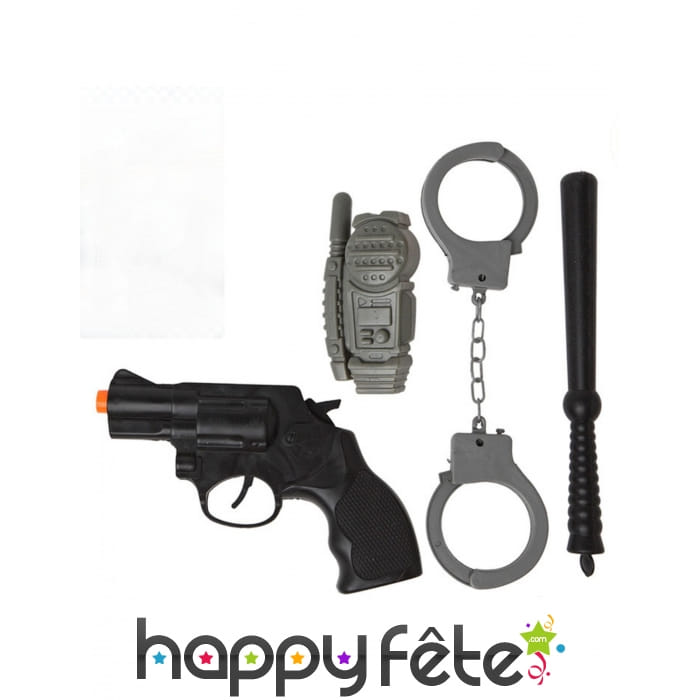 Le kit d'accessoires de policier pour adulte et enfant est constitué de 4 pièces.