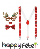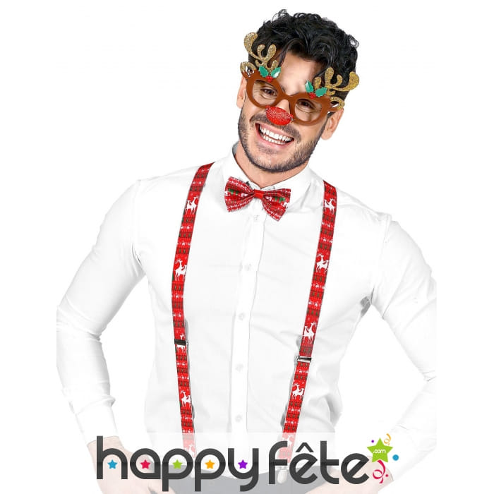 D'abord, ce n'est pas un, ni deux, mais bien trois accessoires que vous obtiendrez! La star du lot? Sans doute cette paire de lunettes aux teintes rouges et blanches, qui vous donneront un air à la fois sérieux et festif. Elles sont ornées de petits détails comme des rennes, des flocons de neige et des guirlandes, ce qui les rend absolument irrésistibles.
