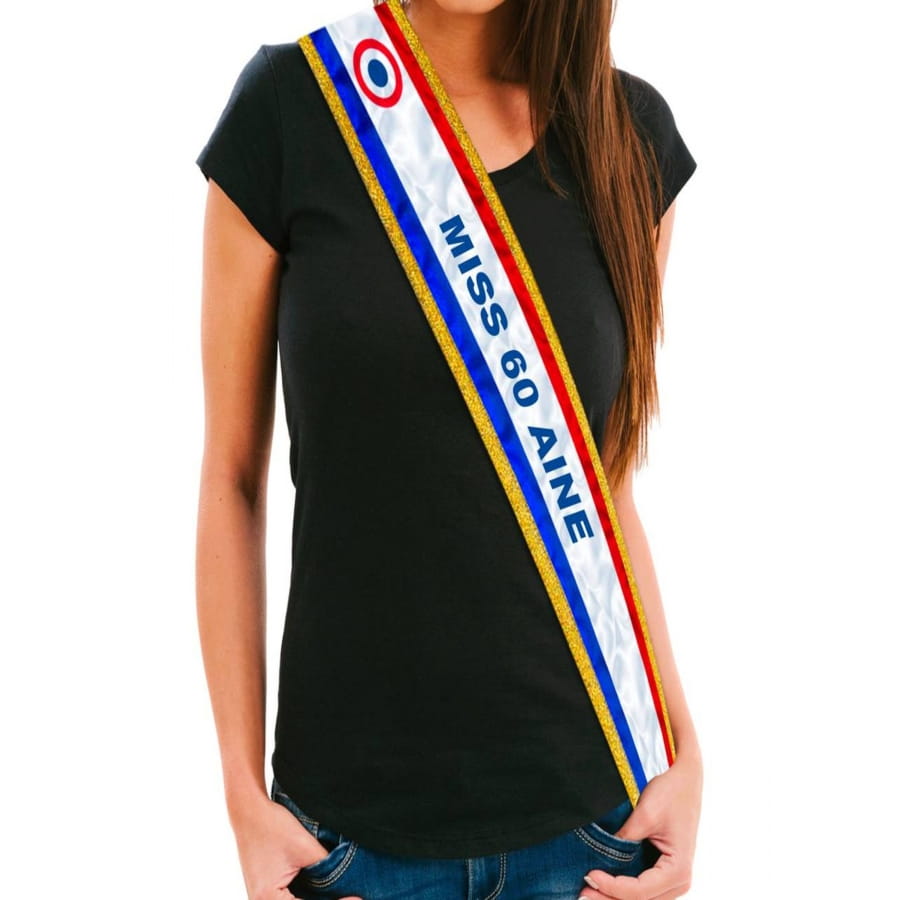 Il s'agit d'un kit composé d'une écharpe en tissu, sur lequel est écrite l'expression "Miss 60 aine".