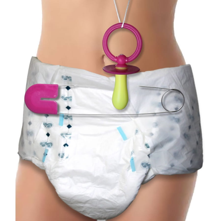 Ce kit bébé pour adulte bleu ou rose comprend tous les éléments qu'il faut.