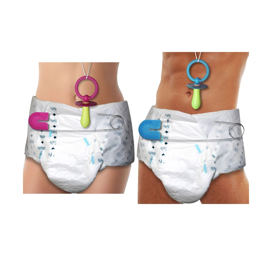 Vous porterez une couche XXL de couleur blanche, à accessoiriser avec une grosse épingle bleue ou rose.