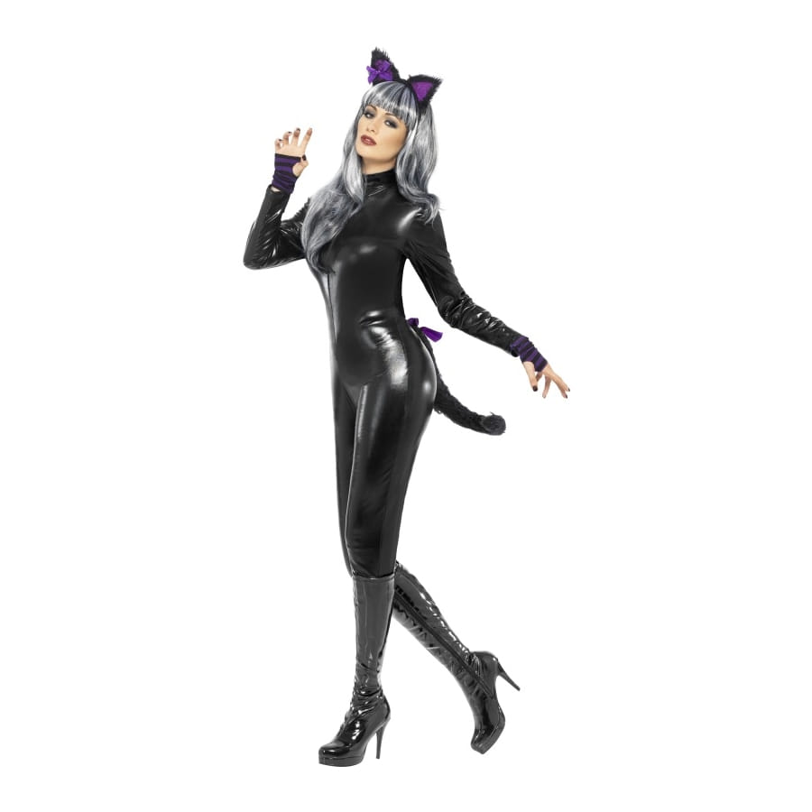 Kit de chat noir, pour femme, composé d'une paire d'oreilles de chat, d'une queue et de gants noirs. Les gants laissent les doigts à découvert. Ces accessoires seront parfaits pour une soirée basée sur le thème des animaux.
