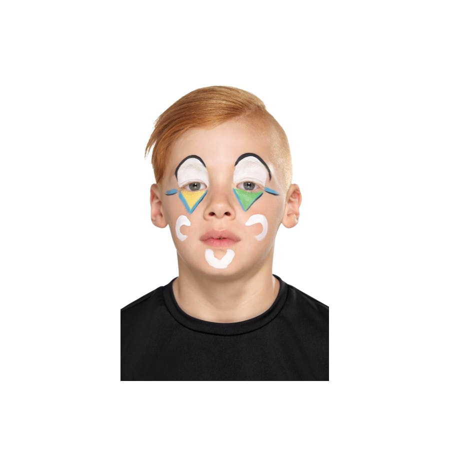 Ce kit cosmétique pour maquillage de petit clown vous sera fort utile pour dessiner les traits de ce personnage rigolo sur le visage de votre enfant.